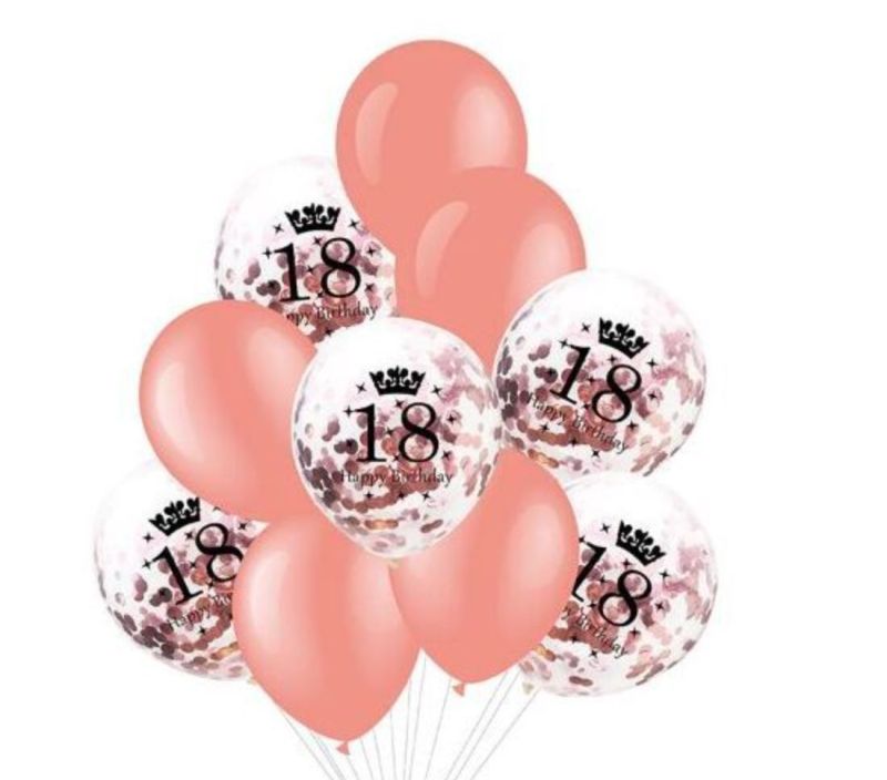 / 5 бр прозрачни балони с розово златни конфети и числото 18 - 5 бр розово златни балони/