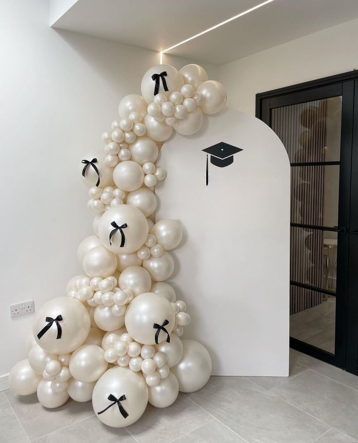 1. Бяло пано с перлени балони и панделки;