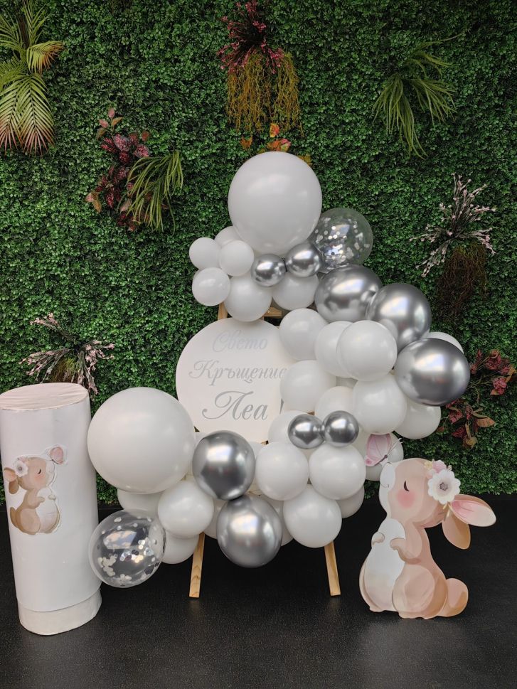 Украса за кръщение с фигурка зайче. Украсата може да бъде изработена в цветове по избор на клиента.