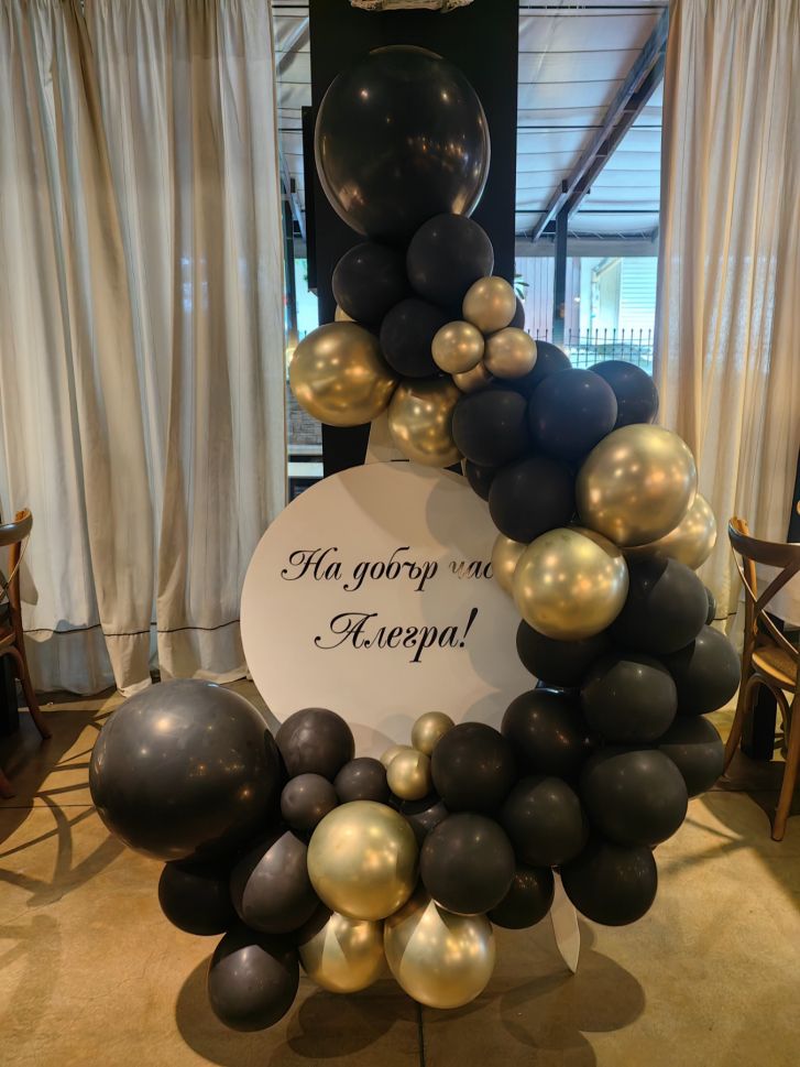 Украса за юбилей, абитуриентски бал или рожден ден със статив и балони