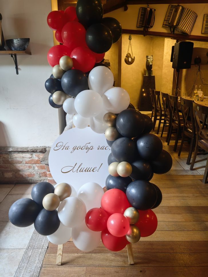Украса за юбилей, абитуриентски бал или рожден ден със статив и балони