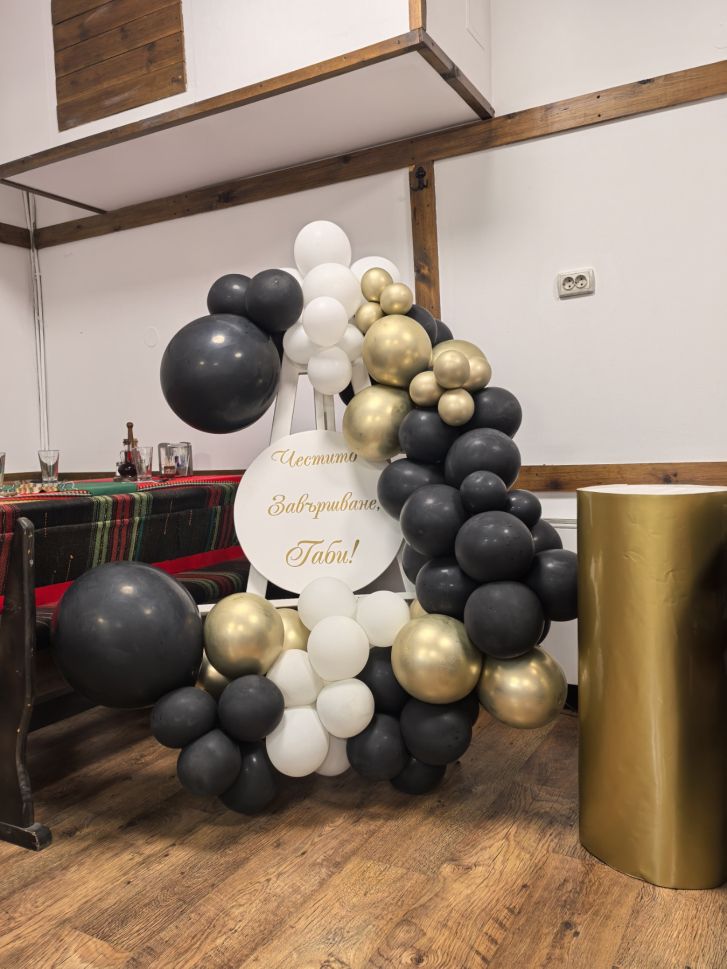 Украса за юбилей, абитуриентски бал или рожден ден със статив и балони