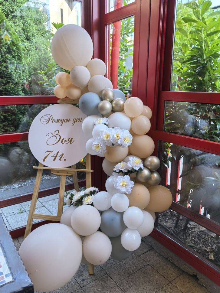 Украса за юбилей, абитуриентски бал или рожден ден със статив и балони