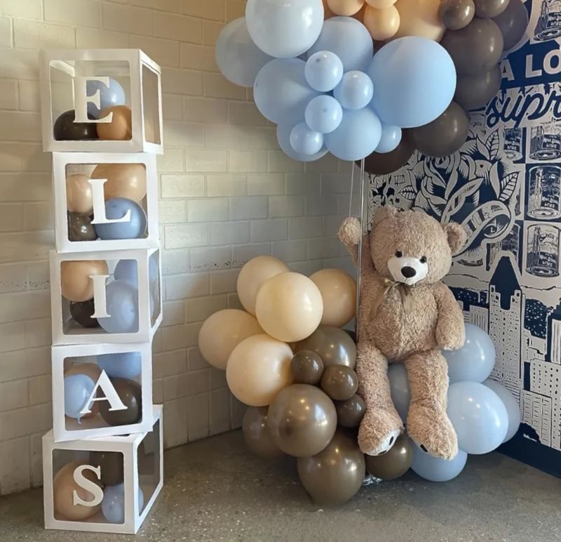 2. Кутии пълни с балони с името на бебето;